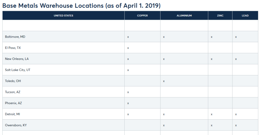 All commodities have a “standard” warehouse that is specified in the contract. Depending on how far each warehouse is from the standard warehouse, a delivery “premium” is added to the price.