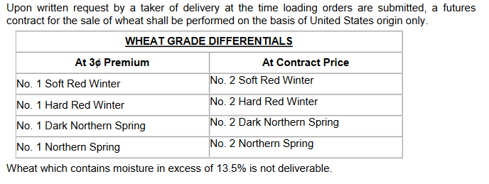 Just like the case of a “standard” warehouse, the contract specifies a “standard” grade and other grades that can be delivered. If a seller delivers the standard grade, they receive the same price as the traded price of the contract. However if a seller delivers a grade above the standard grade they will receive a premium over the traded price. Some exchanges also allow delivery of a slightly lower grade at a discount as well.